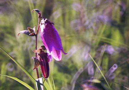 この辺りのホタルブクロは実に色が鮮やかである。これほど色の濃くて鮮やかなホタルブクロはあまり見たことがない。(18KB)